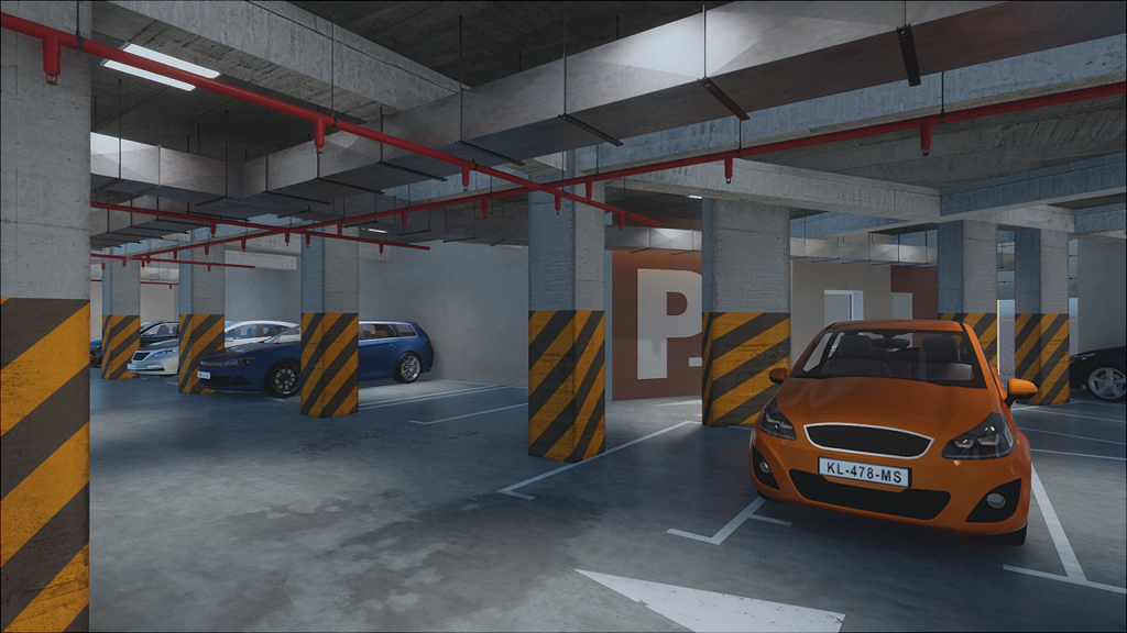 Спуститься на парковку можно в лифте, не выходя на улицу