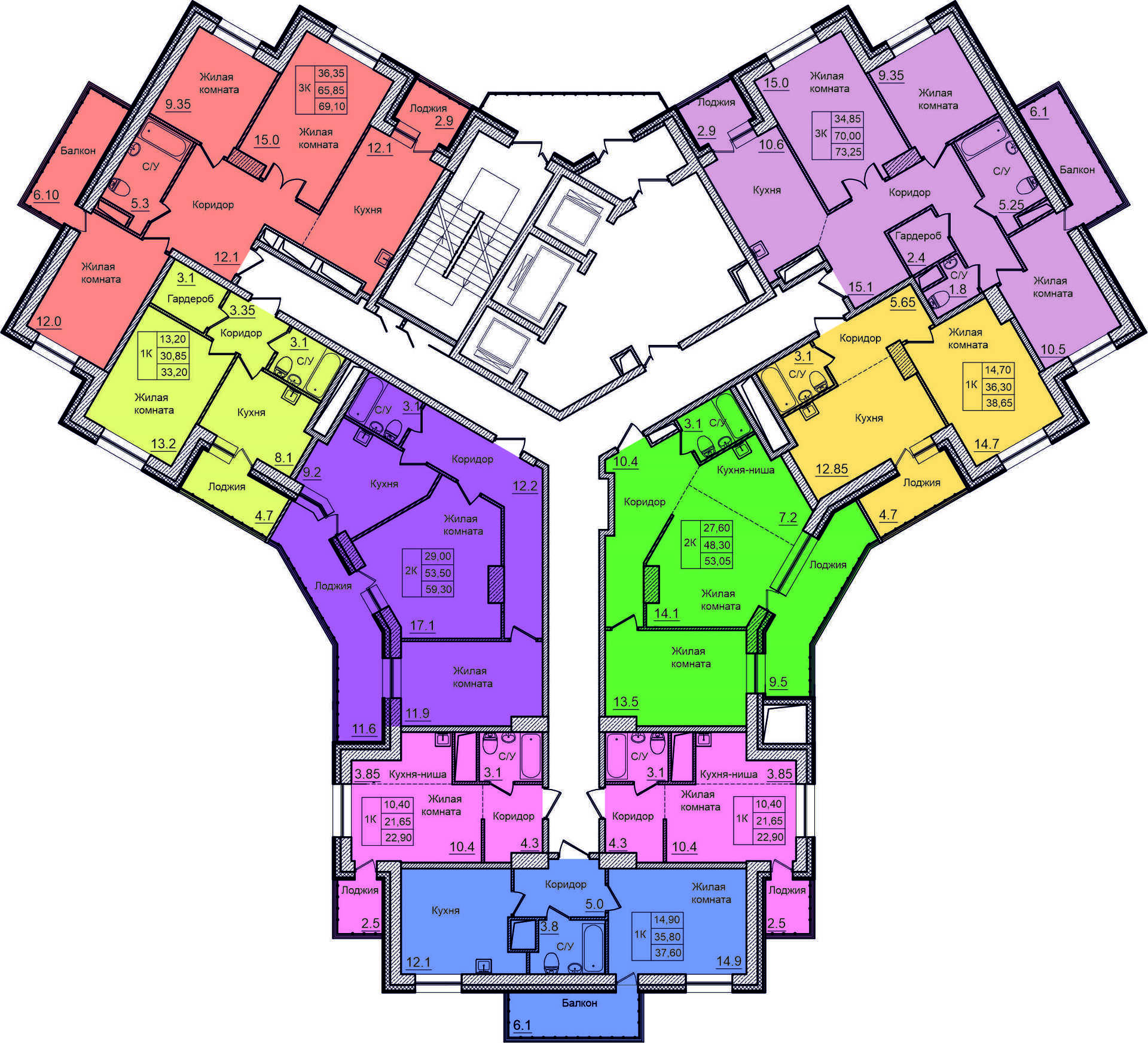 СРЕДНИЕ ЭТАЖИ С 8 ПО 13